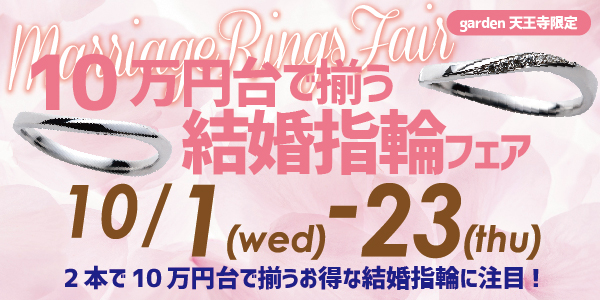 10万円台で揃う結婚指輪フェア 10/1(Wed)~10/23(Thu)