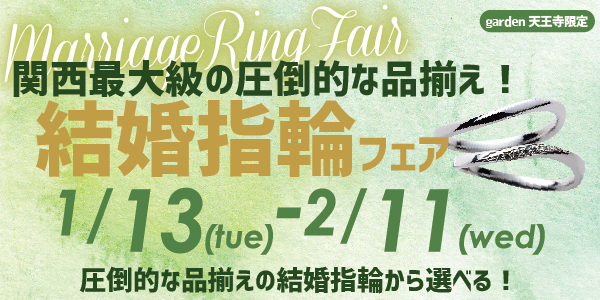関西最大級の圧倒的な品揃えから選ぶ!結婚指輪フェア|garden天王寺
