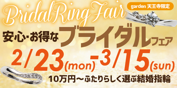 ふたりらしく選ぶ結婚指輪。garden天王寺で安心・お得なブライダルフェアを開催中