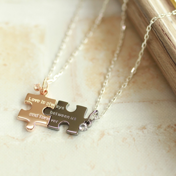 お互いのパズルを合わせると「love is always between us and forever」(愛はいつも2人のそばにあり、永遠である)のメッセージが。