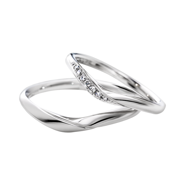 センターダイヤの両脇にセッティングされた二石のダイヤはシャンパングラスを表し、幸せな2人に贈られるたくさんの祝福を現しています。