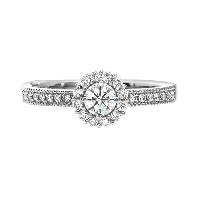 センターダイヤを囲むようにセッティングされたダイヤモンドは、眩く輝く太陽の光をイメージ。