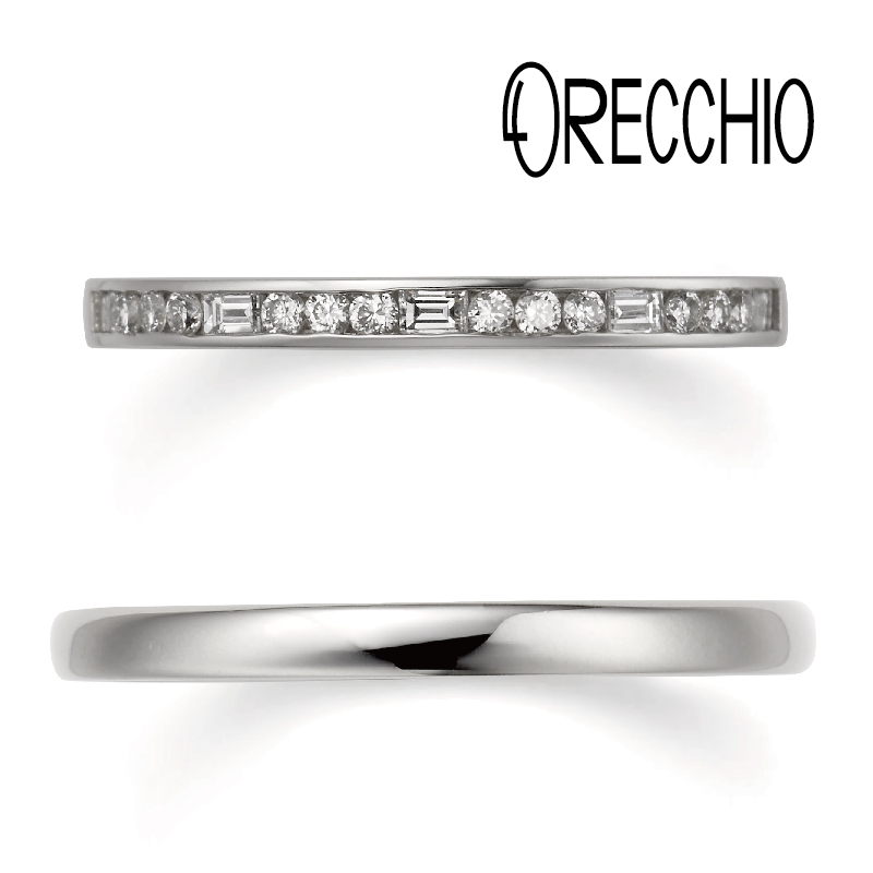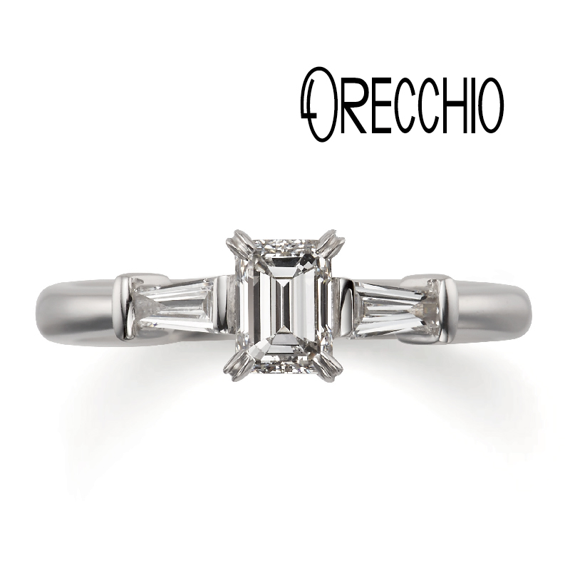ORECCHIO(オレッキオ)は、エメラルドカットダイヤモンドやバケットカットダイヤモンドをメイン素材として作られた婚約指輪や結婚指輪デザインが豊富。四角いダイヤモンドで二人だけの個性をイメージし、シンプルなデザインはもちろん、個性的なものやきらきらなものまで幅広く、人と被らないデザインがたくさんございます。エメラルドカットダイヤモンドやバケットカットダイヤモンドの特徴は、ダイヤモンドのカット面が一般的な丸いダイヤモンド(ラウンドブリリアントカット)よりも少なく、ダイヤモンド自体の透明感を楽しむことが出来るところで、都会的な女性の美しさを表現したブランドです。四角くカットされたダイヤモンドの放つ高品質な輝きが独自の永遠の美しさを与えます。