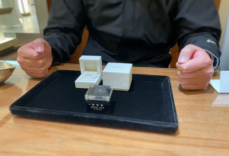 プロポーズリングを探そうと、ホームページを見て仕事終わりにお店に伺いました。プロポーズについて無知だったのでどういう選択肢があるのかも知らず、店頭で案内していただき後からデザインを彼女に選んでもらえるプランを選びました。価格やダイヤモンドの説明もしていただけたので安心して選ぶことができました。無事プロポーズ成功し、彼女も悩みながら婚約指輪のデザインを選んでいたので良かったと思います。ありがとうございました。