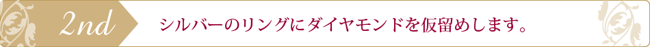 お選びいただきましたダイヤモンドを、婚約指輪らしいシンプルなシルバーリングに仮留めをいたします。 ジュエリーケースに入れてお渡しいたします。 通常お渡しまで3週間程度お時間をいただきます。