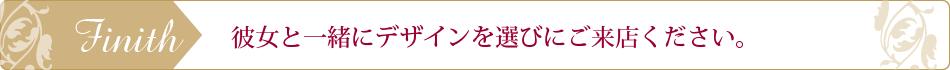 おめでとうございます♪ 彼女から「YES」の返事をもらったら、彼女とリングのデザインを選びにご来店ください。 当店では、豊富なリングのデザインをご用意していますので、ゆっくり店頭でお選びください。 リングをお選びいただいてから、6週間ほどお時間をいただきます。